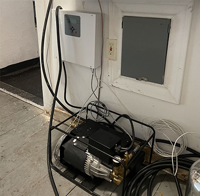- Use the provided ¾” garden hose to connect to the pump inlet. The pressure should not be below 14psi and not above 100psi. The pump will draw 2.4GPM.